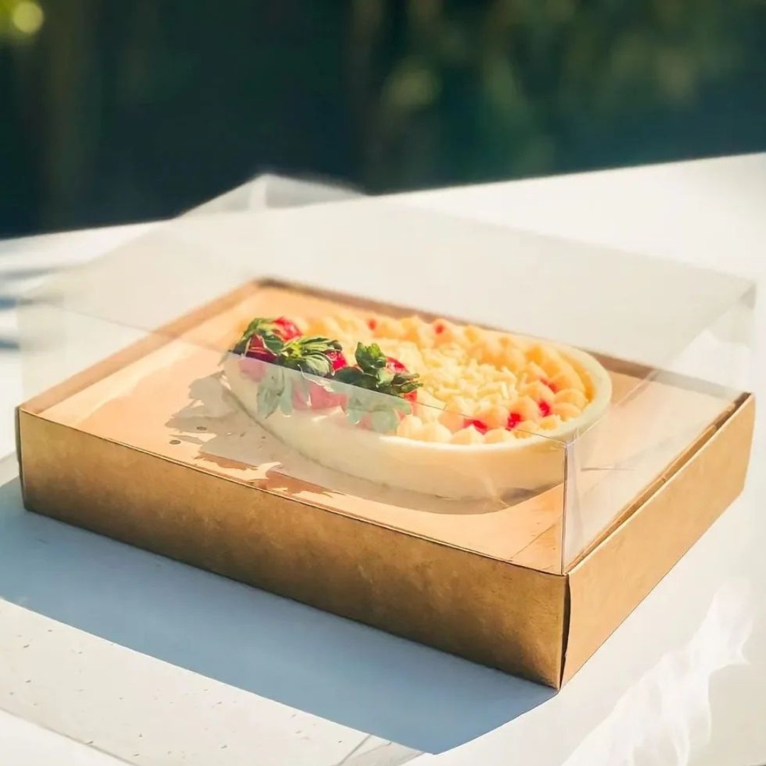 Produzida em papel duplex certificado para contato com alimentos, possui dupla face, permitindo montar a embalagem na cor branca ou kraft (marrom), de acordo com o estilo desejado. Acompanha tampa em acetato, que valoriza o produto e permite visualizar o ovo.