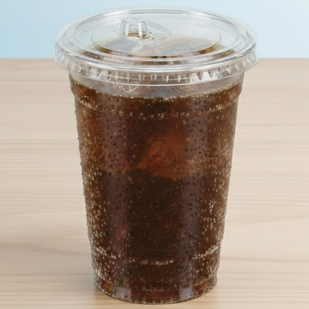 Copo PET Fibraform 400ml com Tampa Spin, prático e versátil. Possui sistema de dobradiça que permite o uso com ou sem canudo, sem retirar a tampa. Ideal para bebidas frias. Material resistente e higiênico.