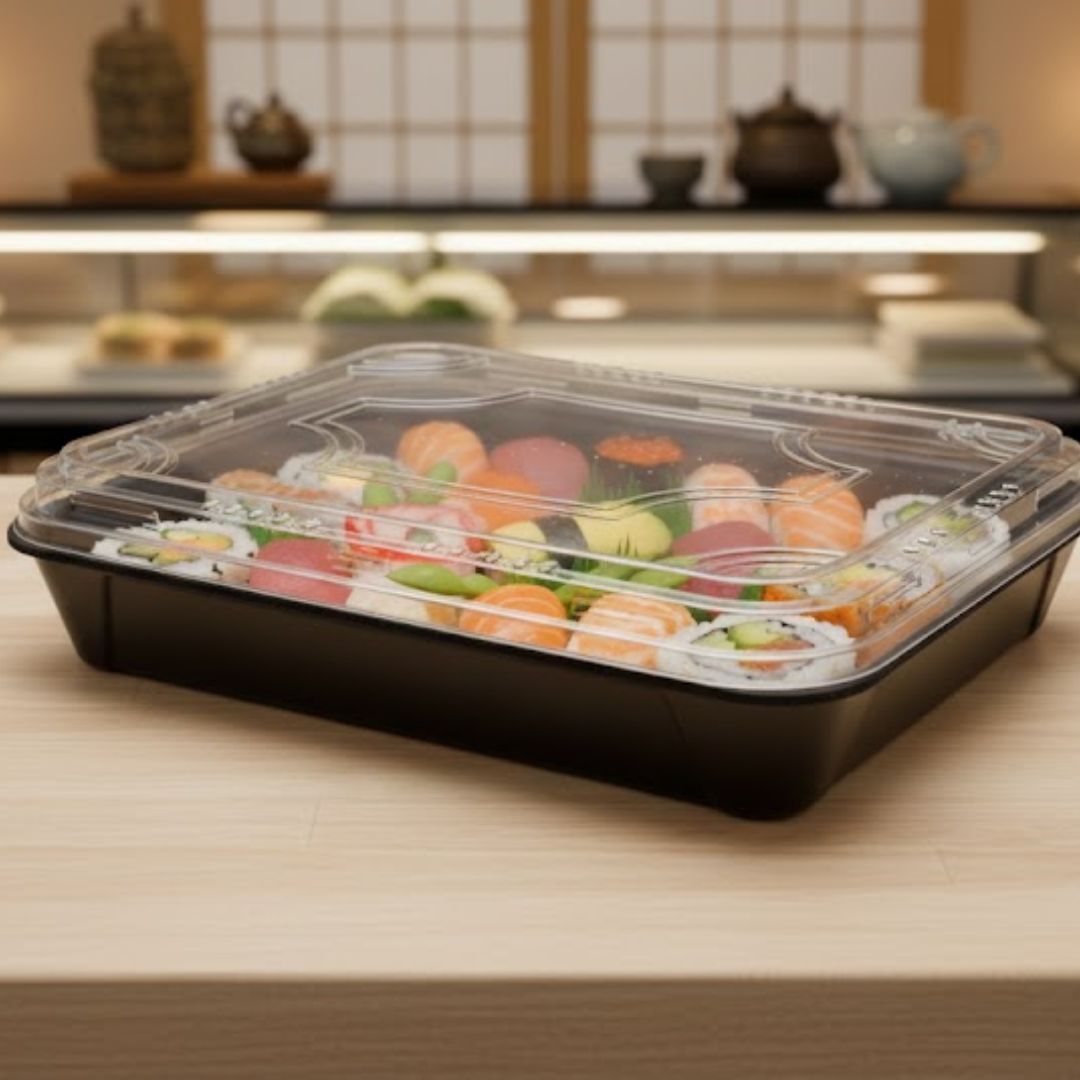 Embalagem Isopor Retangular preta HF100 1100ml c/tampa PET c/100 unidades