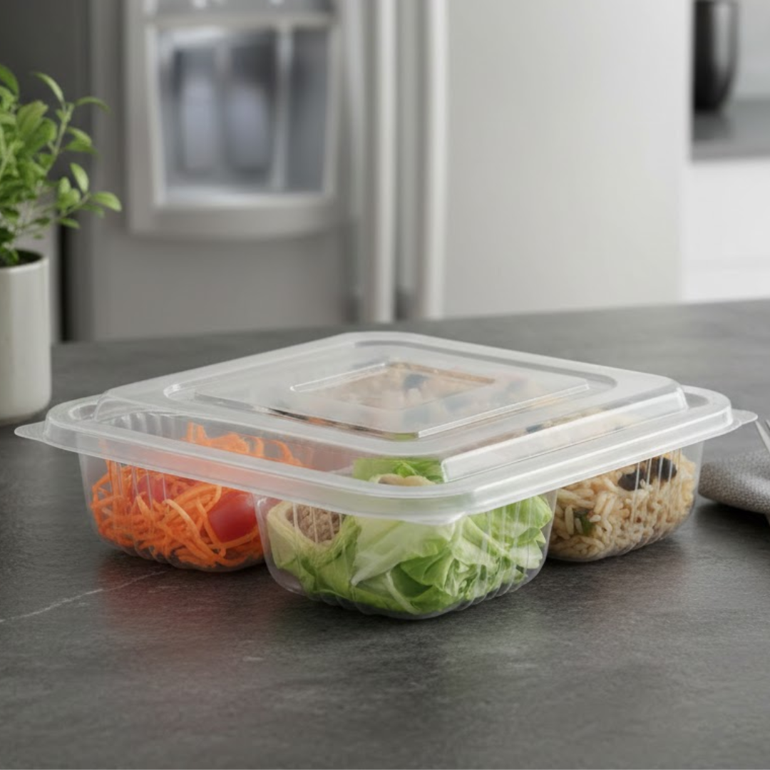 Pote Retang. c/ 3 div. e Tampa Articulada - 810ml