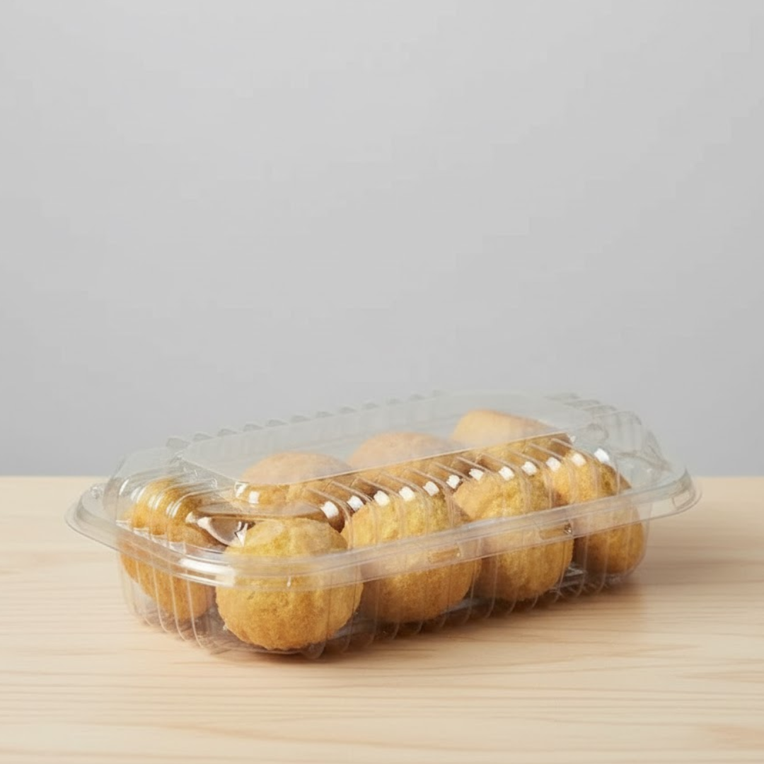 Embalagem ideal para delivery de doces tipo rocambole. Elas são em plástico e possuem tampa articulada para auxiliar tanto no transporte quanto no armazenamento dos seus produtos. A tampa baixa também auxilia para deixar os produtos ainda mais seguros durante o transporte.