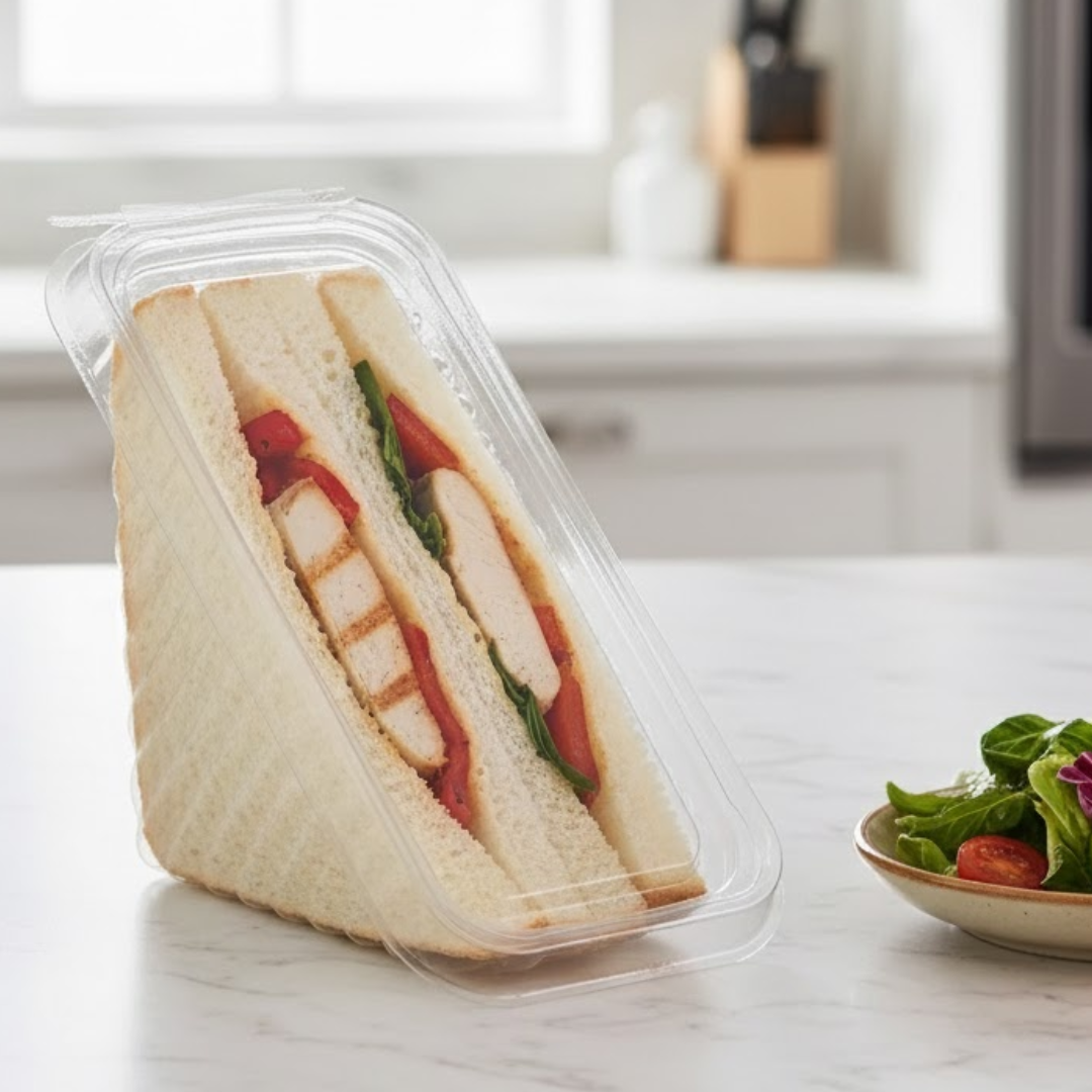 A Embalagem G565 Sanduíche Millenium Cristal PET é ideal para armazenar e expor lanches com praticidade e segurança. Produzida em PET cristal de alta transparência, valoriza a aparência dos alimentos e garante resistência contra amassados e vazamentos.