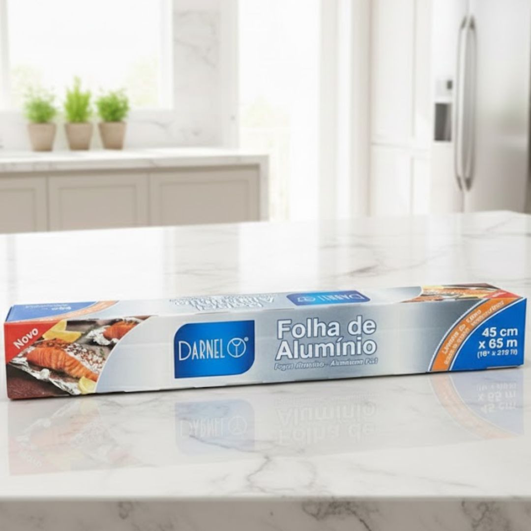 Prático e resistente, o rolo de alumínio Darnel é ideal para embalar, conservar e proteger alimentos no dia a dia. Com 45 cm de largura e 65 metros de comprimento, oferece excelente rendimento.